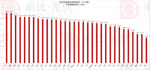 价格区间:全国存量项目机制电价整体落在0.2277元/kWh~0.453元/kWh区间,平均机制电价为0.3643元/kWh。