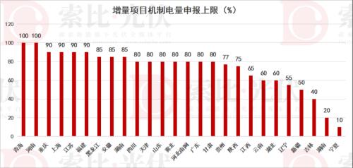 海南:分布式项目机制电量范围为80%-100%,图表按最高比例100%计入。