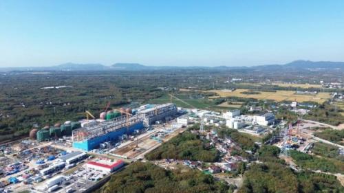 在江苏金坛,位于茅山脚下的华能金坛2×350兆瓦盐穴压缩空气储能发电项目现场,这座超级绿色“充电宝”正茁壮成长。作为江苏省重大项目,目前,该项目2号机组建设迎来新进展,相继实现压缩机基础全部顺利交安、空气透平发电机组基座浇筑完成、两台行车顺利吊装就位、主厂房钢屋架吊装工作圆满结束、储热区钢平台结构吊装正式启动等节点突破,为接下来世界最先进的空气压缩机组、透平膨胀发电机组等核心设备的到货、安装创造了决定性条件,金坛项目团队正向着实现主厂房封闭断水、倒送厂用电里程碑节点而努力奋战。
