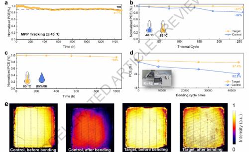 经历43000次弯曲循环与250次热循环后,效率保持率仍超过97%,满足IEC标准测试要求,具备实际应用潜力。
