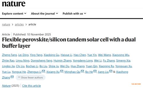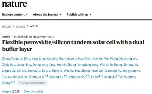 Fang, Z., Ding, L., Yang, Y. et al. Flexible perovskite/silicon tandem solar cell with a dual buffer layer. Nature (2025).