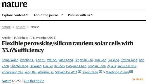 Wang, S., Li, W., Yu, C. et al. Flexible perovskite/silicon tandem solar cells with 33.6% efficiency. Nature (2025).