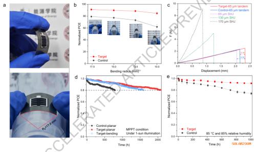柔性太阳能电池在特殊应用领域具有变革性潜力,但其发展长期受限于如何在实现高光电转换效率的同时,兼具优异的机械韧性与运行稳定性。