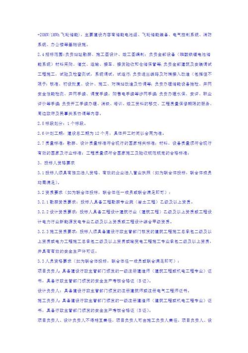 招标范围:负责站址勘察、施工图设计、竣工图编制;负责全部设备(磷酸铁锂电池储能系统)材料采购、催交、运输、接车、接货验收和仓储保管等;负责全部建筑及安装调试工程施工,试验及检查测试,系统调试,试运行;负责送出线路及对端接入改造(包括但不限于:核准、初设批复、设计、施工、对端站改造及协调等;负责办理储能设备抽检、并网安全性能检测、并网手续、调度手续,购售电手续等;涉网手续负责办理水保、安评、职业评价等手续;负责开工手续办理、消缺、培训、竣工资料的移交、工程质量保修期限的服务周边政府及民事关系协调等内容。