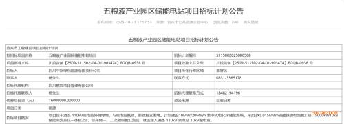 近日,四川宜宾市公共资源交易平台发布的一则招标计划。公告显示,五粮液集团通过旗下四川中新绿色能源有限责任公司,拟投资1600万元建设10MW/20MWh集中式电化学储能电站,直接接入五粮液产业园区电网。