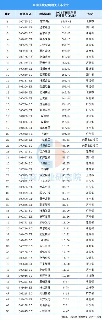 目前,光伏玻璃相关A股上市企业中,江苏省分布最多,共8家。浙江省和广东省均为5家,并列第二。