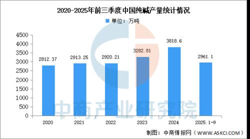 近年来,中国纯碱产量呈现增长趋势。中商产业研究院发布的《2025-2030年中国纯碱行业市场分析及发展趋势预测报告》显示,2025年前三季度中国纯碱产量达2961.1万吨,同比增长4.3%。