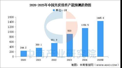 中国是全球最大的光伏组件市场,我国光伏组件产能规模进一步扩大。中商产业研究院发布的《2025-2030年中国光伏组件行业市场深度研究及发展前景投资预测分析报告》显示,2024年中国光伏组件产能达1156.5GW,同比分别增长25.7%。中商产业研究院分析师预测,2025年中国光伏组件产能将达到1445.6GW。