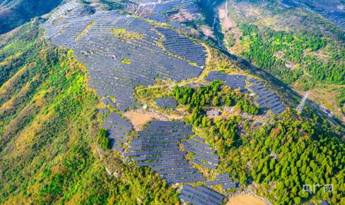 日前,贵州省毕节市黔西市定新乡天高云淡,一处石漠化荒山上,万千光伏板依着山势,如梯田般层层铺展,在阳光下闪耀着金属光泽……