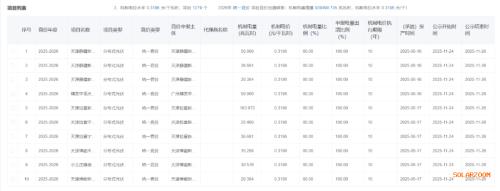 2025~2026年统一竞价项目竞价出清结果:机制电量规模939490.735兆瓦时,机制电价水平0.3196元/千瓦时,项目1279个。