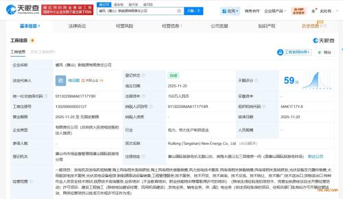 天眼查App显示,近日,睿风(唐山)新能源有限责任公司成立,法定代表人为格日图,注册资本150万元人民币,经营范围含发电机及发电机组销售、海上风电相关系统研发、海上风电相关装备销售、风力发电技术服务、风电场相关装备销售、风电场相关系统研发、光伏设备及元器件销售等,由明阳智能(601615)全资持股。