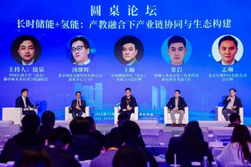 专题会期间的圆桌论坛上,中海储能总经理王屾与行业嘉宾围绕产教融合下长时储能+氢能产业链协同与生态构建展开深度研讨,碰撞思想火花,为产业跨界融合、可持续发展贡献智慧方案,进一步夯实了储能产业协同发展的合作基础。