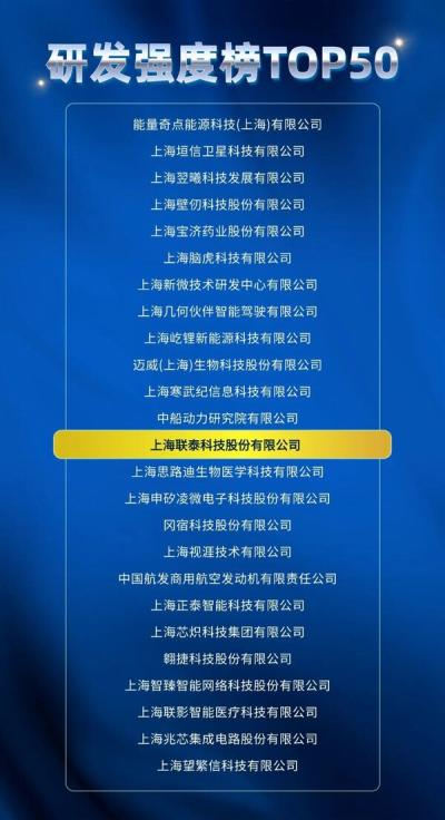 联泰科技成功入围2025上海硬核科技企业TOP100