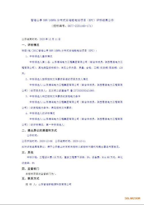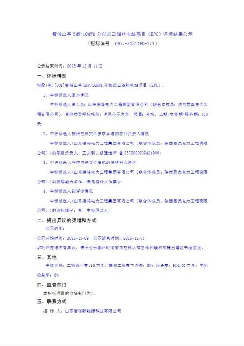 12月8日,智储山亭5MW/10MWh分布式云储能电站项目(EPC)评标结果公示。