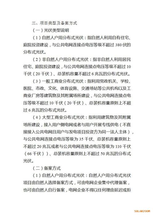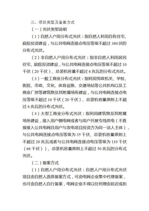 文件指出,申报项目类型:非自然人户用分布式光伏项目、一般工商业分布式光伏项目、大型工商业分布式光伏项目。?
