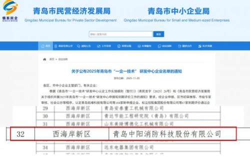 此前,中阳消防已凭借扎实的研发实力,被认定为2025年青岛市“一企一技术”研发中心,自2017年企业研发中心成立以来,公司已连续多次获评市级企业技术中心且技术中心连续获评价“良好”。此次储能项目获批,不仅彰显了企业在消防安全领域的深厚积累,也体现了政府对其持续创新能力与综合技术实力的高度认可。
