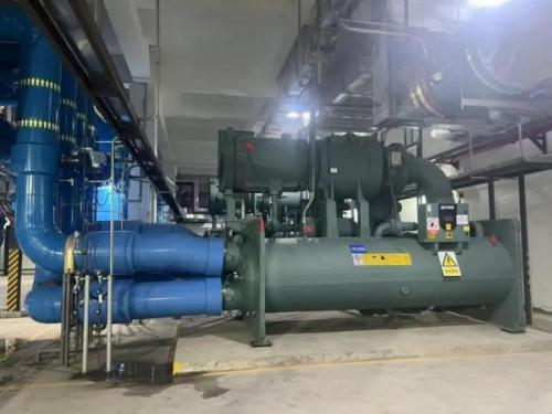 分布式光伏+再生水源热泵系统:项目综合利用产区屋顶平面与建筑立面光伏技术,分布式光伏总容量达804kWp,绿电“自发自用”,配置5台再生水源热泵机组,将热网循环水温度提升8-10摄氏度并入热网,供热能力近40MW,综合制热能效比可达4.2以上,达到国家一级能效最高标准,系统能效与经济性显著。