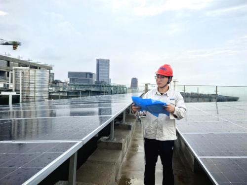 ▲南瑞工程项目管理人员开展屋面光伏施工验收