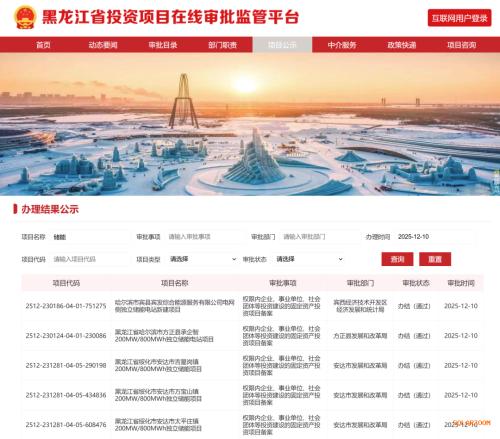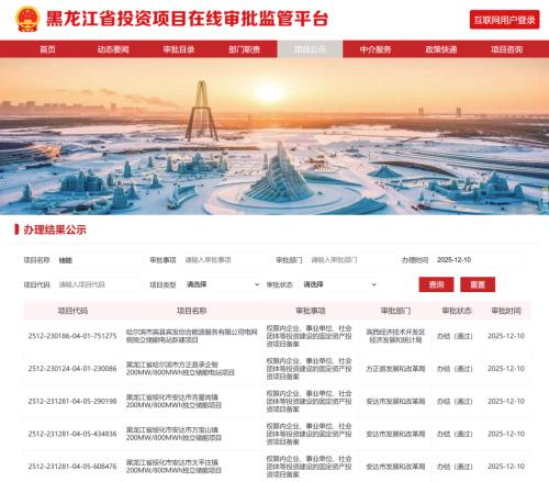 12月10日,黑龙江省能源局公示的项目备案信息显示,5个200MW/800MWh级独立储能项目同日完成备案,总投资超35亿元,总储能规模达4GWh,布局精准覆盖哈尔滨、绥化两大电力核心负荷区域。