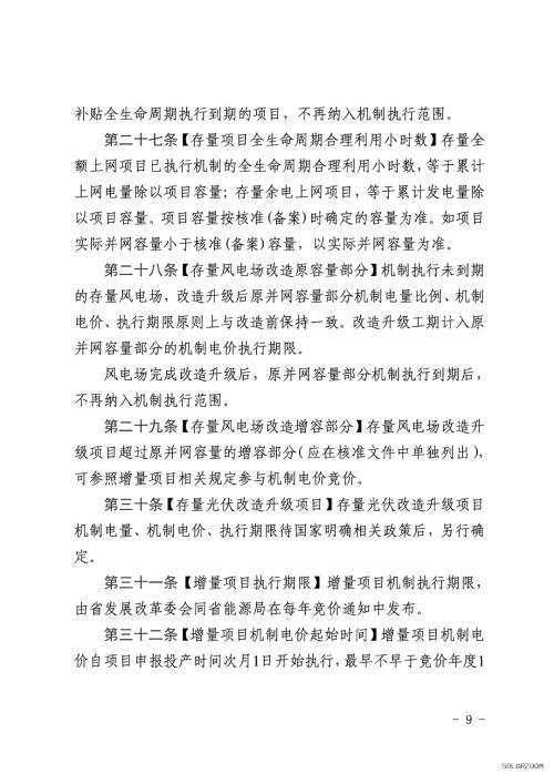 此外,文件明确存量项目机制执行期限按项目全生命周期合理利用小时数剩余小时数与投产满20年较早者确定。存量海上风电、陆上风电、光伏发电全生命周期合理利用小时数分别为52000小时、36000小时、22000小时。国家确定的光伏领跑者基地项目和2019年、2020年竞价光伏项目,在以上小时数基础上增加10%。