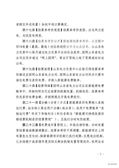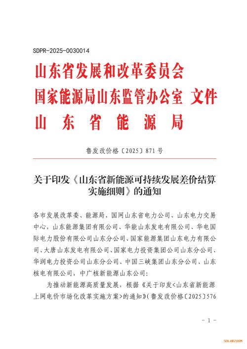 近日,山东省发展和改革委员会、国家能源局山东监管办公室文件、山东省能源局正式印发《山东省新能源可持续发展差价结算实施细则》的通知,就纳入机制电量的机制比例、电价水平等进行明确。