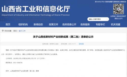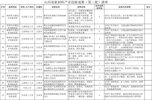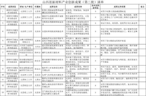 关于山西省新材料产业创新成果(第二批)清单的公示