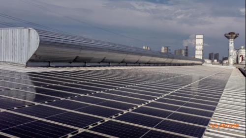 钢铁生产由于卸料、打磨等,容易产生粉尘。若将这类积尘严重的屋顶用于光伏项目建设,粉尘会大量附着并遮挡光伏组件,导致光电转换效率下降。据介绍,隆基森特光伏系统搭载防积灰设计,经雨水冲刷表面即可实现灰尘“自清洁”,该设计可使其发电量较传统光伏产品提升6%。