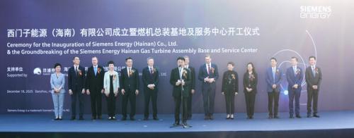 北京2025年12月18日/美通社/ --在海南自由贸易港全岛封关正式启动之际,西门子能源今天在海南省儋州市举行燃机总装基地及服务中心开工仪式,并同步成立西门子能源(海南)有限公司。西门子能源燃气发电集团全球高级副总裁Joern Schmuecker、西门子能源全球高级副总裁、大中华区负责人姚振国,省发改委、省工信厅、省商务厅、海南经发局、儋州市政府等单位负责人以及项目支持单位海南省洋浦开发建设控股有限公司和相关能源企业合作伙伴、供应商代表等出席仪式。