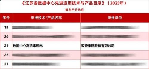 双登股份数据中心高倍率锂电产品近日入选《江苏省数据中心先进适用技术与产品目录》,助推产业绿色智能化升级。该目录由江苏算力联盟联合GDC绿能数据中心产业联盟共同组织,在江苏省工信厅和节能监察中心指导下,于“绿色智算数据中心发展大会暨GDC绿数联盟2025年会”公布。