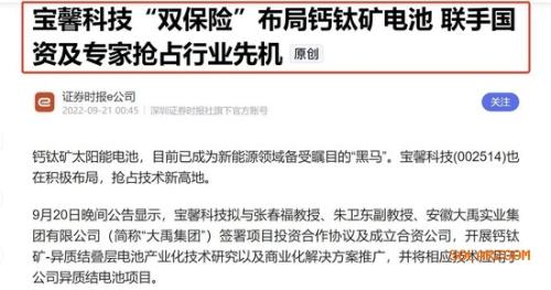 宝馨科技(002514)相关人士表示,钙钛矿因其特殊的结构,因此和异质结电池叠层是相比较而言更适合的,叠层结构也更加合理,相比较于其他电池的叠层,研发周期和研发难度相对较小,钙钛矿-异质结叠层电池的商品化、量产化的进程更有竞争力。
