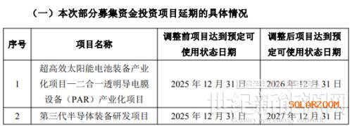 与此同时,该公司还将其首发时的募投项目—超高效太阳能电池装备产业化项目—大尺寸多腔室扩散炉及PECVD设备生产线建设予以结项,节余募集资金继续存放募集资金专户管理。小编发现,捷佳伟创的“超高效太阳能电池装备产业化项目—二合一透明导电膜设备(PAR)产业化项目”此次已是第三次延期。