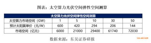 据东吴证券测算,若未来太空算力市场空间达50GW,太空算力光伏市场空间可突破7万亿元。