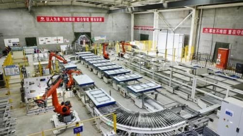 面对挑战,项目部组建技术攻关小组制定专项方案,构建定日镜组件仓储、组装生产、现场安装、调试运维的全链条闭环管控体系。针对小型定日镜特性及粘接工艺要求,项目部搭建全自动流水化恒温组装车间,依托智能温控系统稳定室内温度,保障镜片与支架精准粘接。车间内关键工序由机械臂完成,规避人工操作偏差,提升组装效率与精度,技术人员全程监控核查,严把产品质量关。