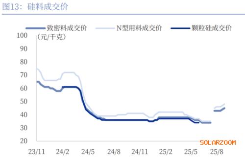 2025年多晶硅价格波动较大,7月以来报价开始上涨。硅料完全成本约为4.5万-5万元/吨,头部企业现金成本约2.5-3万元/吨,当前硅料价格正逐步向完全成本线靠拢。