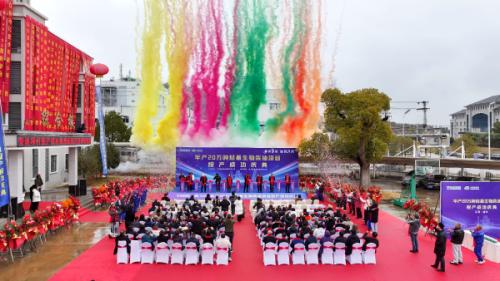 1月27日,江西尊创新能源有限公司年产20万吨烃基生物柴油项目投产成功并举行出油庆典。副市长王菲,高新区党工委副书记、管委会主任刘德波出席活动。