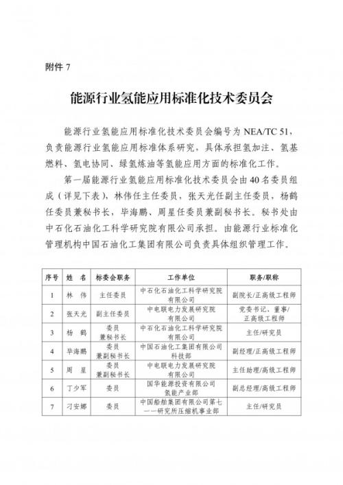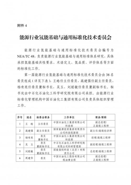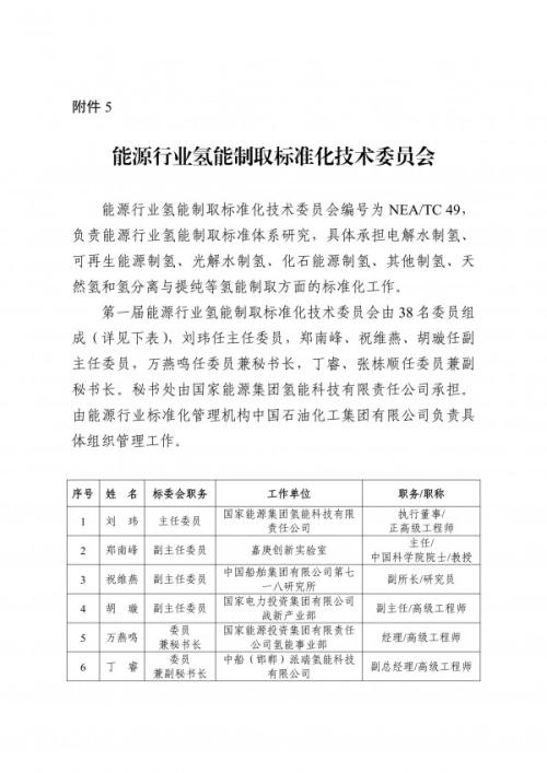 在这7个新成立的标准化技术组织中,氢能领域独占四席,分别为能源行业氢能基础与通用标准化技术委员会、能源行业氢能制取标准化技术委员会、能源行业氢能储存与运输标准化技术委员会、能源行业氢能应用标准化技术委员会。