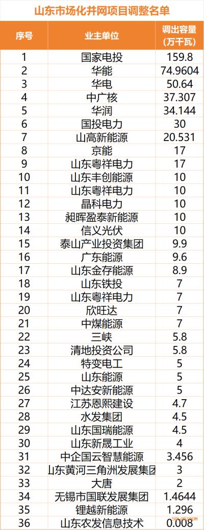 山东发布《关于调整集中式光伏发电并网项目名单的通知》指出,将63个,总容量583.9万千瓦(5.839GW)的未能如期建成并网的光伏电站项目移出市场化并网项目名单。