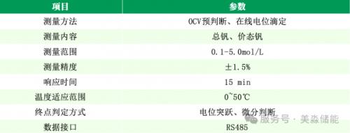 痛点即是机遇,需求引领创新。作为深耕钒电池领域的专业企业,美淼立足行业核心需求,以电池系统整体思维为导向,打破传统检测技术局限,打造专属钒浓度仪,创新性采用OCV(开路电压)测算与电位滴定法融合技术路线,从源头破解行业测控难题。美淼摒弃传统滴定的高污染试剂,采用特定价态、特定浓度的电解液作为滴定剂,从源头杜绝滴定过程中的污染问题,既契合绿色生产理念,也适配全钒液流电池环境友好的产品特性;同时创新引入OCV测算前置流程,在滴定检测前,通过OCV开路电压测算,可快速估算出待测电解液的价态范围,进而精准计算出所需滴定剂的用量,彻底摆脱传统滴定“盲目滴加、反复调试”的困境,大幅提升检测效率。
