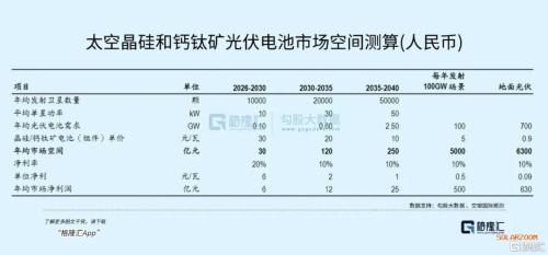 根据测算,2026-2030年全球太空晶硅和钙钛矿光伏电池年均市场空间约30亿元,2030-2035年将增至120亿元,2035-2040年进一步提升至250亿元,保持较快的增长速度。而且太空光伏电池对性能要求严苛,技术壁垒远高于地面光伏,相关企业的产品单价和单位利润也远高于地面光伏业务,盈利表现亮眼。