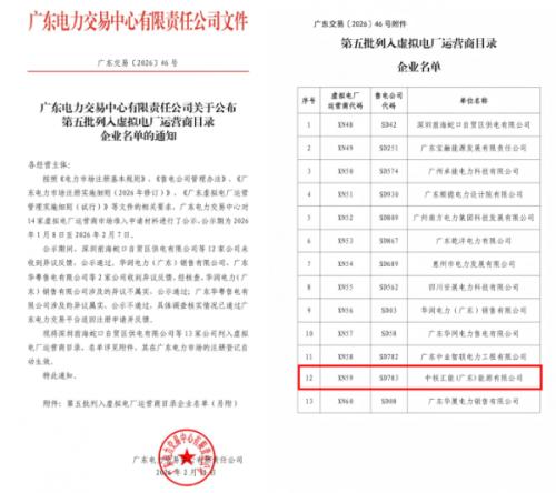 近日,公司成功进入广东电力交易中心发布的虚拟电厂运营商目录,成为中核汇能首家取得私有化部署虚拟电厂运营商资质的省级公司,标志着公司在构建新型电力系统、探索能源数字化转型道路上取得里程碑式进展。