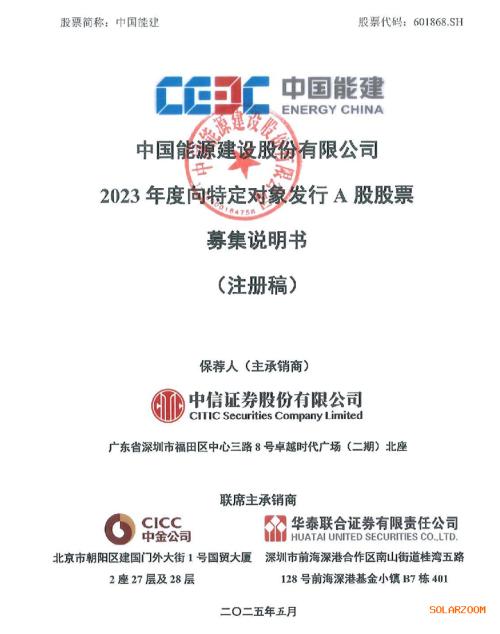 2月27日,中国能源建设股份有限公司2023年度向特定对象发行A股股票募集说明书(注册稿)发布。