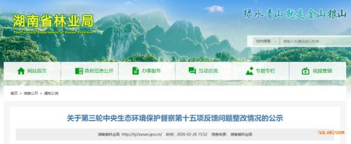 日前,湖南省林业局发布《关于第三轮中央生态环境保护督察第十五项反馈问题整改情况的公示》。
