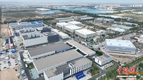 2025年7月2日,银川算力产业园在宁夏银川举行启动运营仪式。据悉,产业园完成建设后,可服务人工智能理论峰值计算能力不低于20000P,实现算力、算法、数据等资源要素的汇集,形成一定的人工智能计算应用场景,为银川“算力之都”建立资源与应用基础。图为银川算力产业园外貌。(无人机照片)中新社记者于晶摄