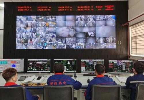 在内蒙古博能生物质热电有限公司,工作室是整套机组的“智慧大脑”。走进工作室,巨型LED监控屏实时点亮、一目了然,厂区各工段生产场景全域覆盖、清晰可视,锅炉运行、设备运转等各项关键参数实时跳动,全方位呈现机组运行态势。