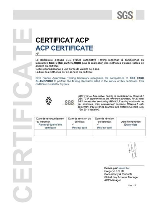SGS获雷诺橡胶材料测试独家认可