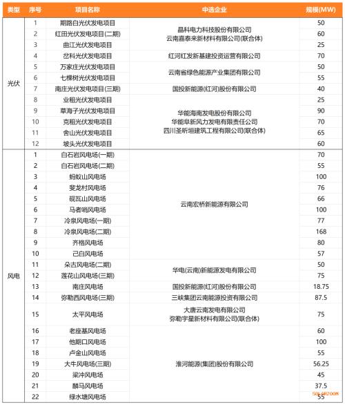 3月20日,红河州人民政府发布《红河州列入云南省2025年第三批新能源项目建设清单的34个新能源项目建设业主优选工作中选公示》。