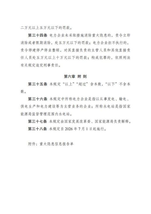 4月9日,国家发展和改革委员会发布《电力重大事故隐患判定标准及治理监督管理规定》 2026年第41号令。