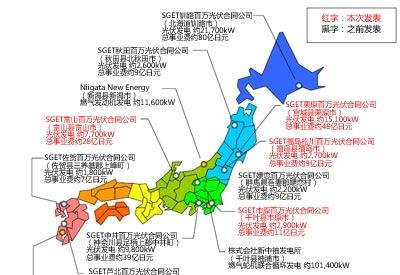 公布的百万瓦级光伏电站的设置地点和输出功率规模的详情如下,括号内依次为施工企业、太阳能电池板制造企业和逆变器(PCS)制造企业。千叶县市原市约2.9MW(杰富意工程技术,韩华Q-Cells,富士电机),福岛市松川町约2.7MW(东北日立,日立制作所,日立制作所),富山市约7.7MW(东芝与Hokuden Techono Service,东芝,东芝三菱电机产业系统(TMEIC)),宫城县栗原市(杰富意工程技术,韩华Q-Cells,富士电机)。