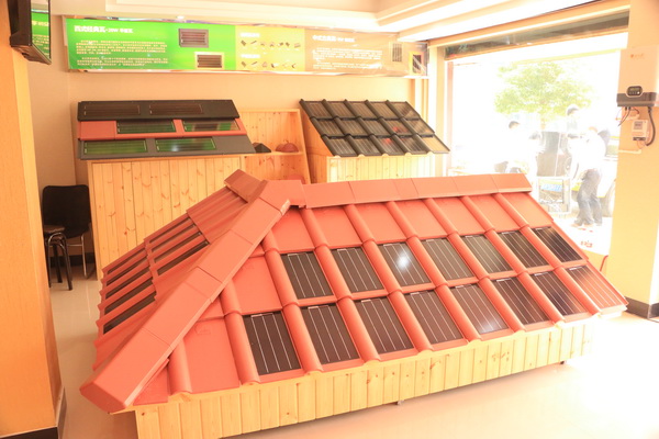 记者在现场看到,该体验店的门头上安装了一排会发电的瓦片,非常美观。边上还安装了三块光伏组件,这些光伏瓦片和光伏组件所发的电可以直接供店里的空调、照明等设备使用。
