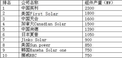 无锡尚德在加拿大CanadianSolar后位居第五,第六位日本夏普,第七位晶科能源,第八为美国Sunpower,韩国HanwhaSolarone和挪威REC并列第九。